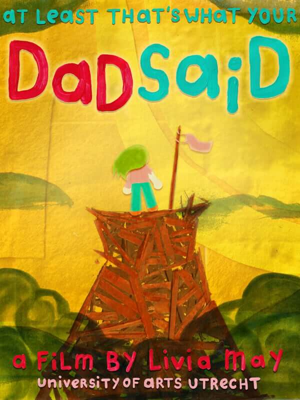 Young Freya loves her dad, even though he doesn't always give the same amount of love back. She learns that it’s not always easy to get recognition from your parents. We follow her journey and while growing up she develops a passion for climbing. However, her father doesn’t approve of it. His strong opinion weighs heavy on her and she carries his words with her, until it has taken over her life. She learns to overcome his negativity by realizing those words are just something her dad said and does not say anything about her worth. By accepting herself for who she is, she learns how to break free from her father’s opinion. In this animated short full of metaphors, the gravity of the theme is combined with stylized design, bright colors and analog textures. So it will ease us into the vulnerability of what a parent-child relationship can entail.
