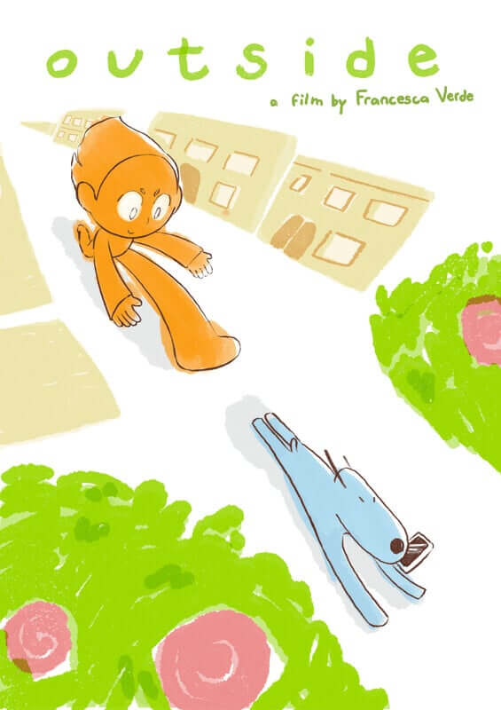 Outside is a 2D short film that follows a kid and his dog on a brief adventure. The kid, absorbed in his phone, barely notices the world around him until the dog suddenly snatches it and runs away. As a chase unfolds through the town, the kid slowly starts noticing his surroundings and appreciating the outside world.